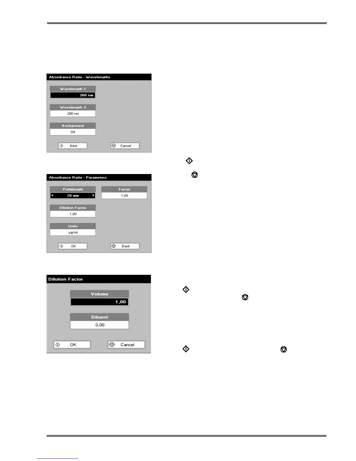 Absorbance Ratio – Parameters Screen