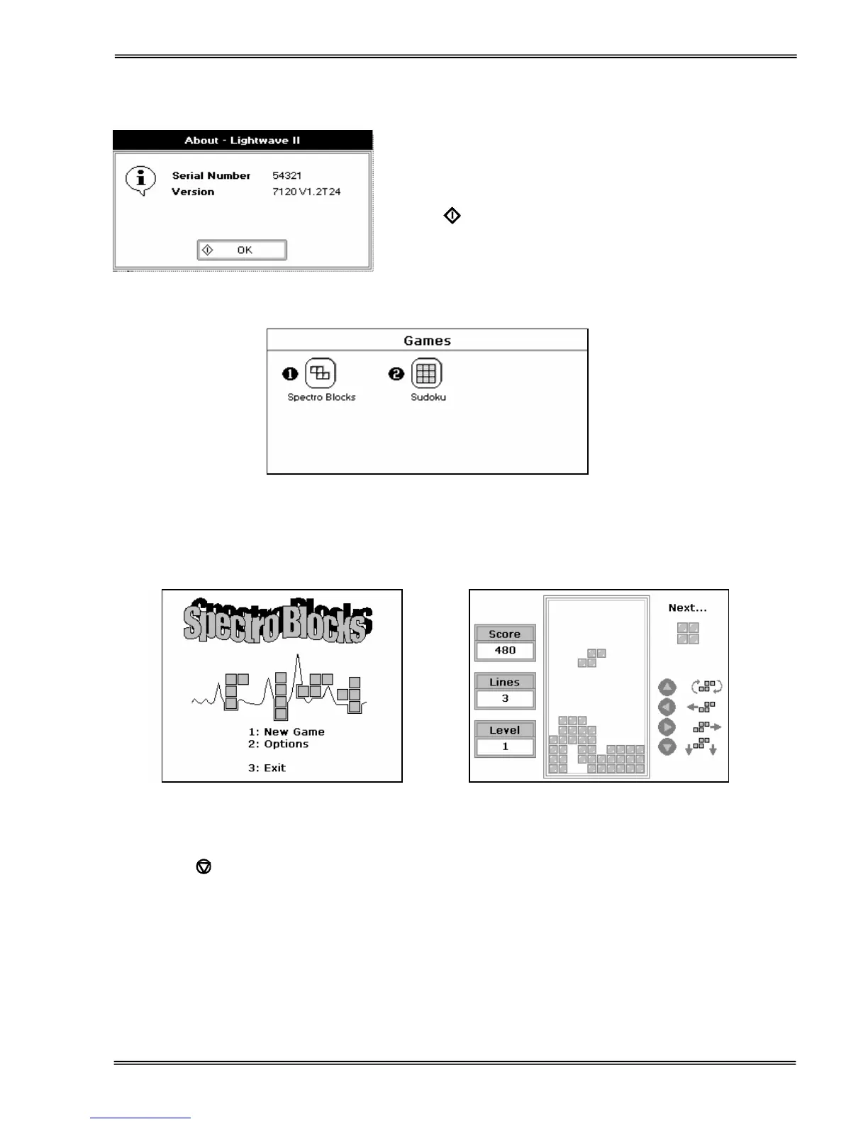 WPA LIGHTWAVE II - 7: about; 8: Games