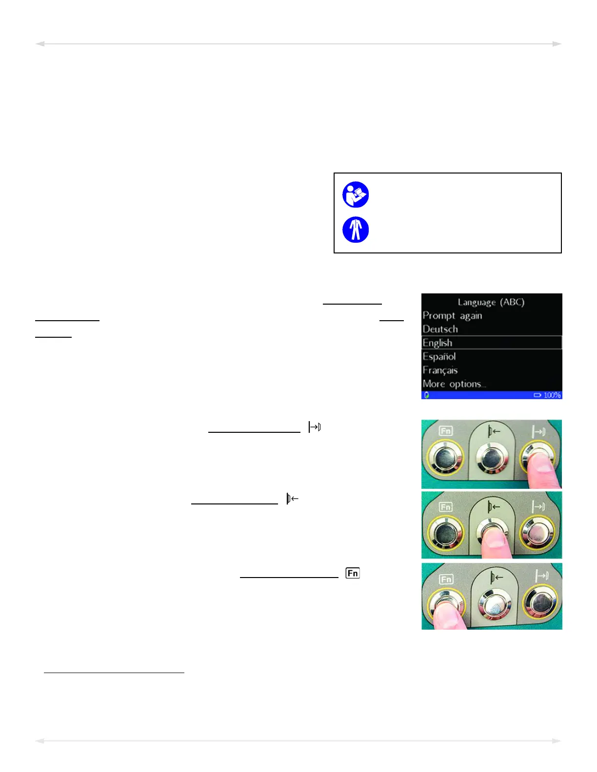 To select a language, press the “function” button ( ).