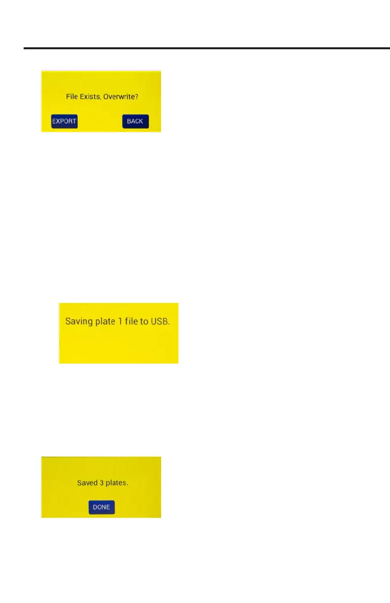 Fig. 27—When you press Export, the message indicates which plate data is being stored.