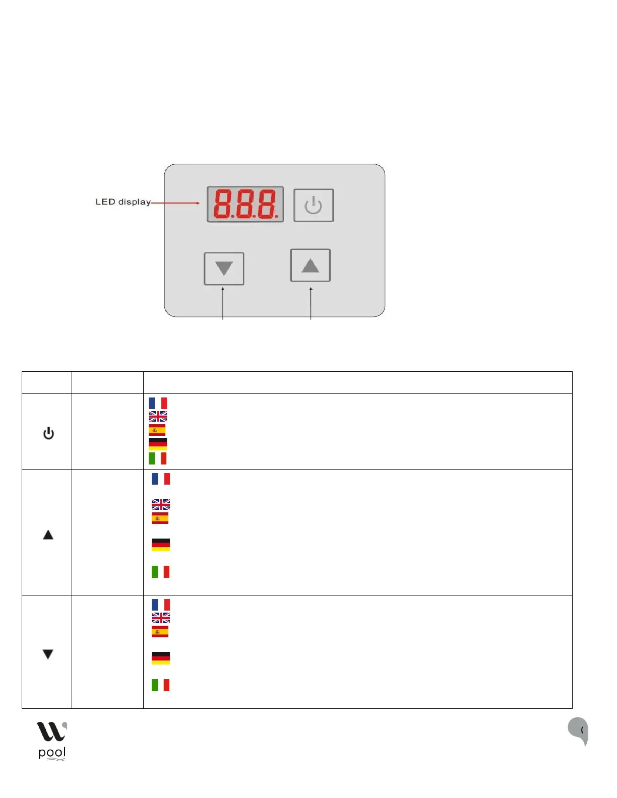 : Premere questo pulsante per accendere/spegnere la pompa di calore.