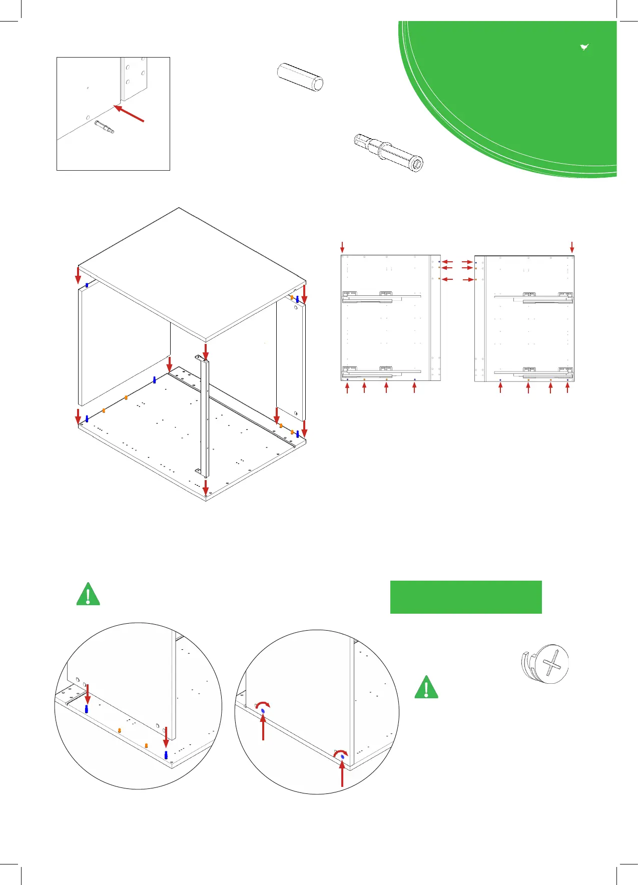 Attach panels (C) & (E) to panels (B), using dowels (F)