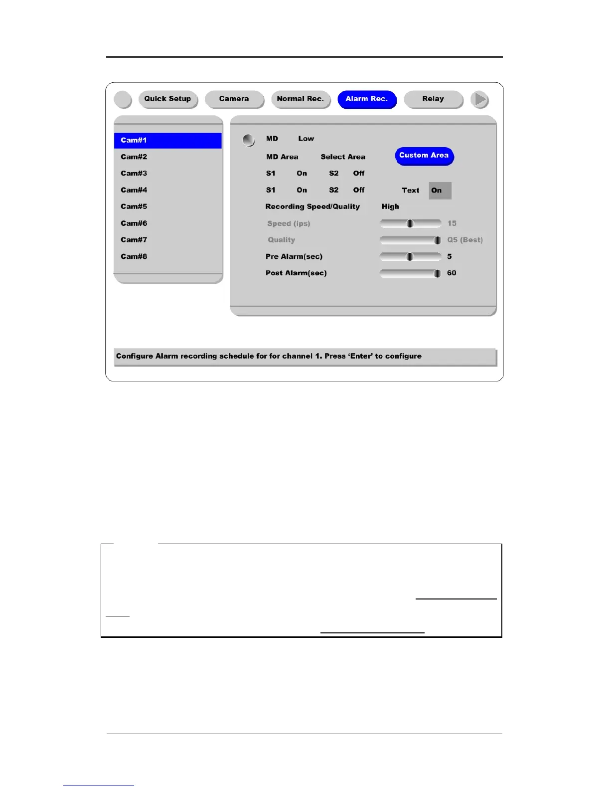2. For recording setting by sensor input, refer to the “Alarm Rec.” part of the “ DRS Programming
