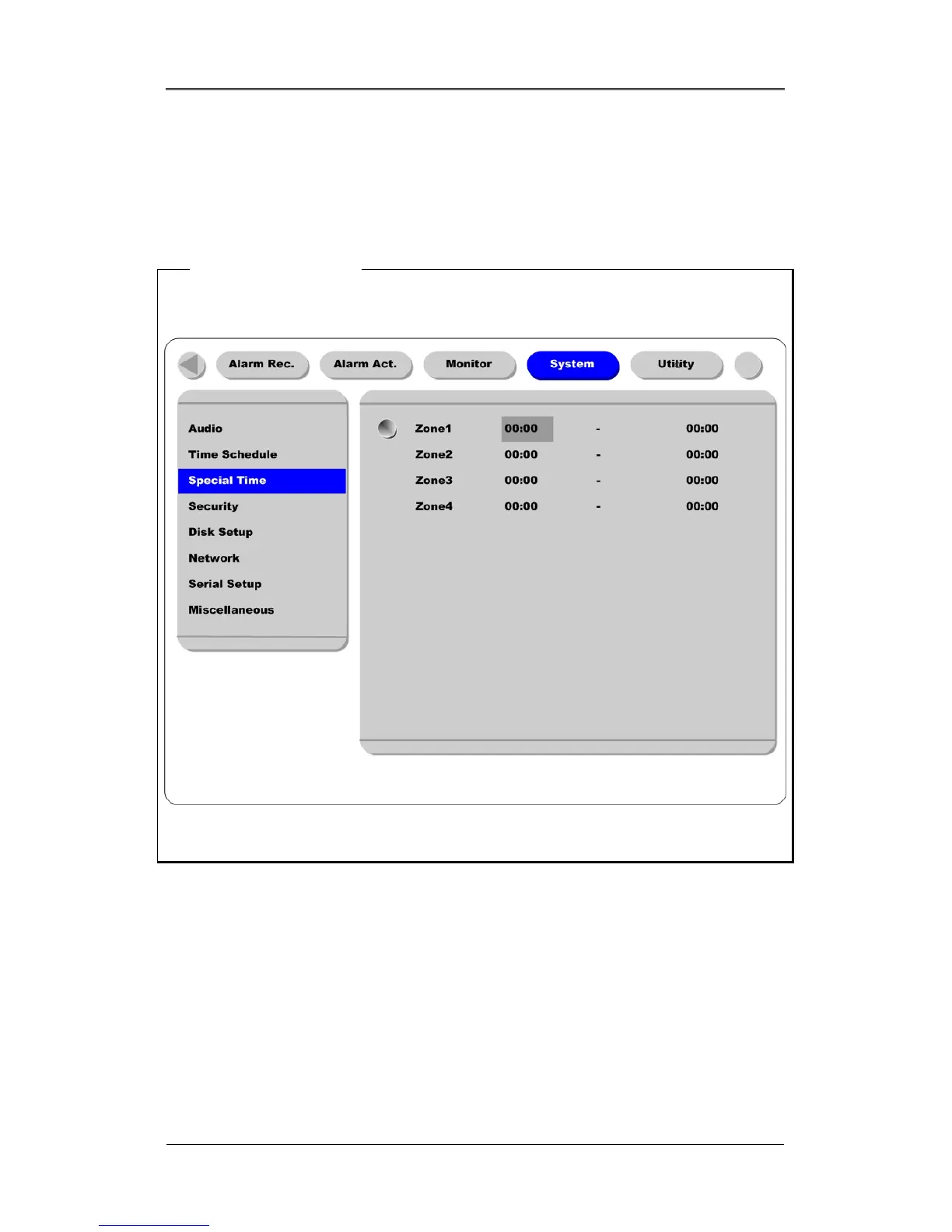 To set ”Special Time,” move to “System” tab.
