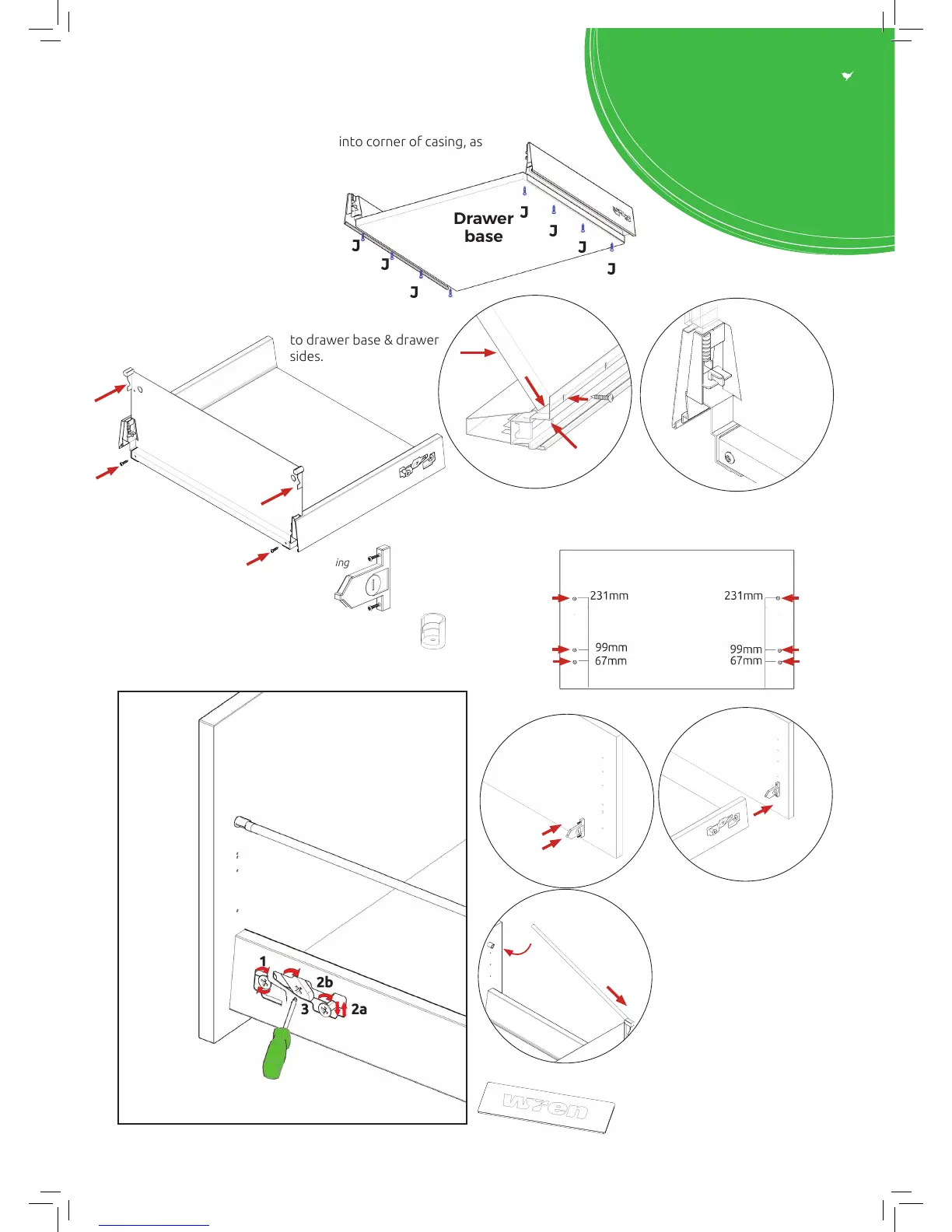 Secure drawer base to drawer side using 4 x 16mm drawer