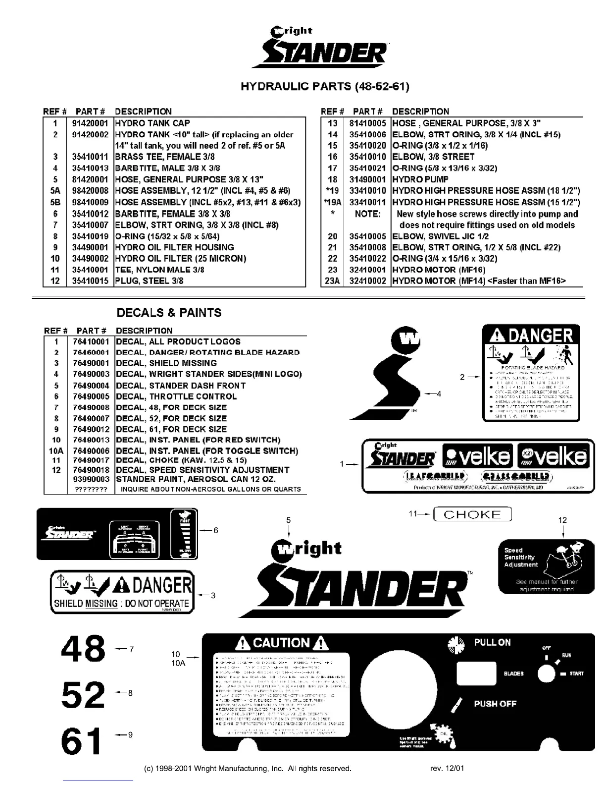 Wright Manufacturing Stander 48 - Hydraulic Parts; Decals & Paints