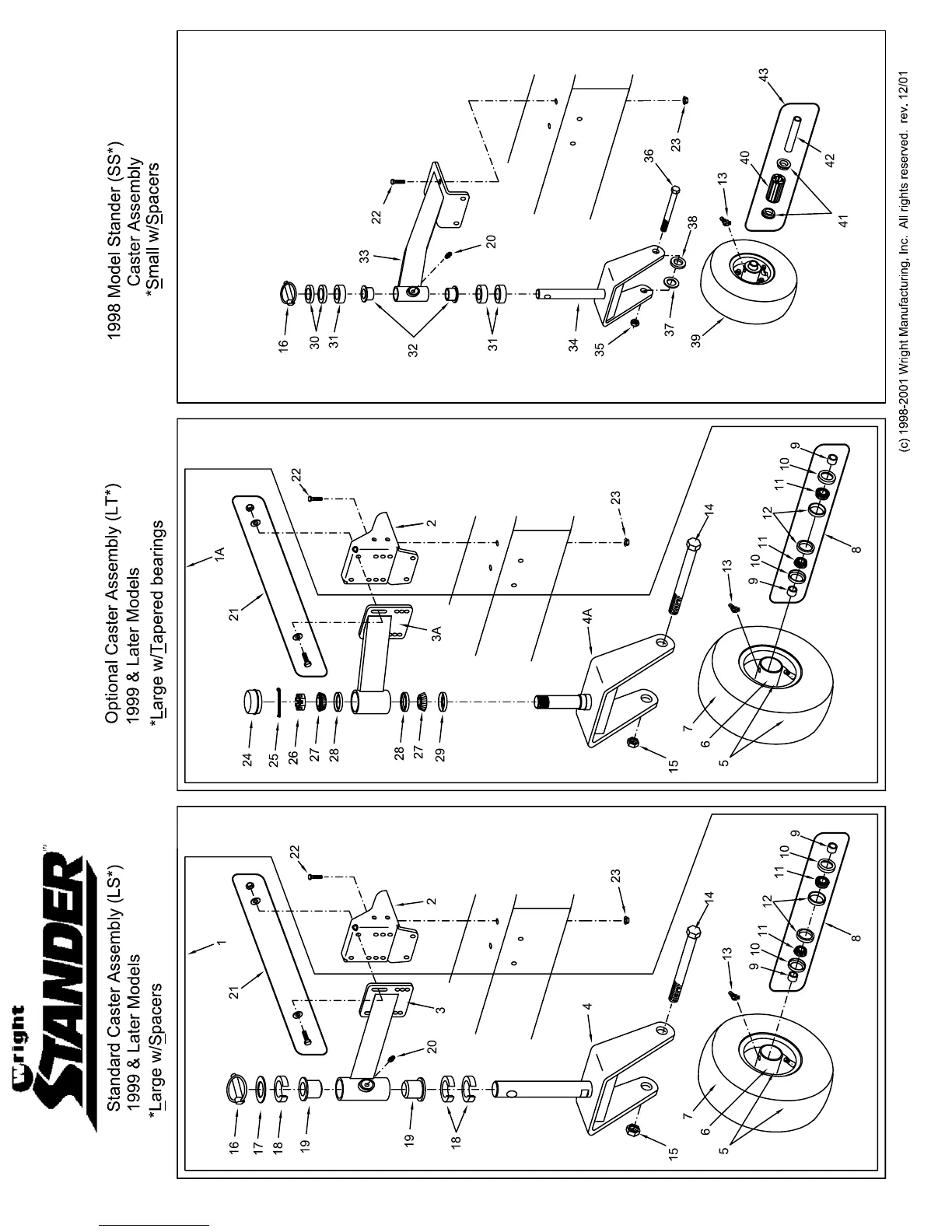 Wright Manufacturing Stander 48 - Standard Caster Assembly (LS); Optional Caster Assembly (LT); 1998 Model Caster Assembly (SS)