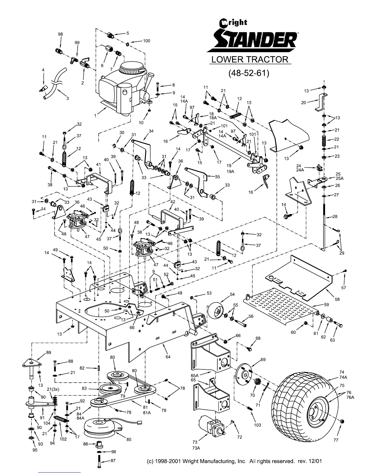 Wright Manufacturing Stander 48 - Lower Tractor (48 - 52 - 61) Exploded View