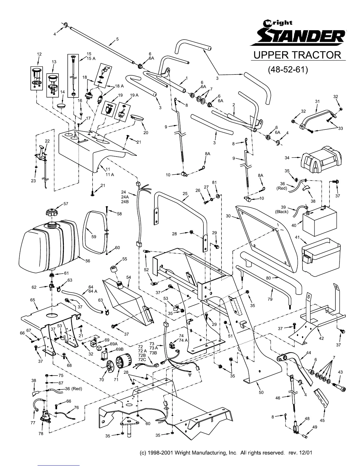 Wright Manufacturing Stander 48 - Upper Tractor (48 - 52 - 61) Exploded View