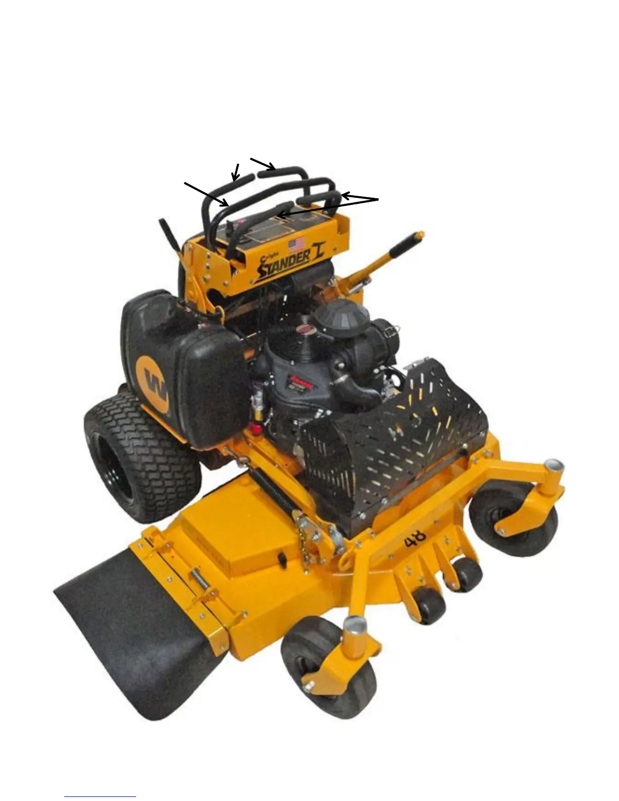 5. Brake Handle 6. Stationary Handle Bar 7. Control Levers 8. Deck Lift Handle