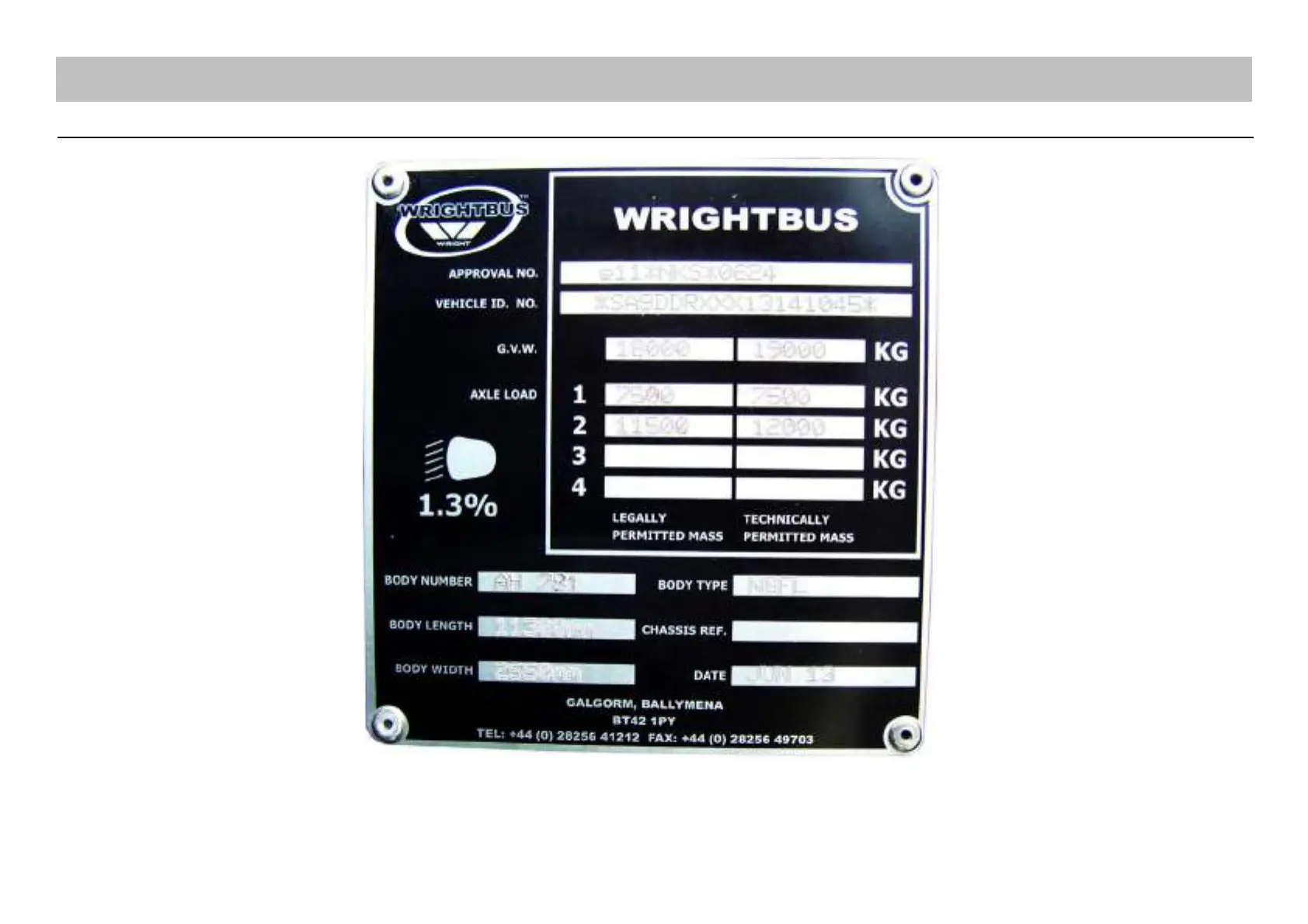 Wrightbus NBFL 2013 - Vehicle Identification Plate (V.I.N)