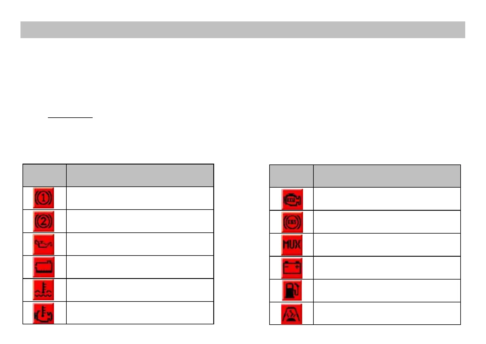 If any of the following symbols (as shown in Table 1) appear, you should proceed with caution and stop at a safe location, turning off the