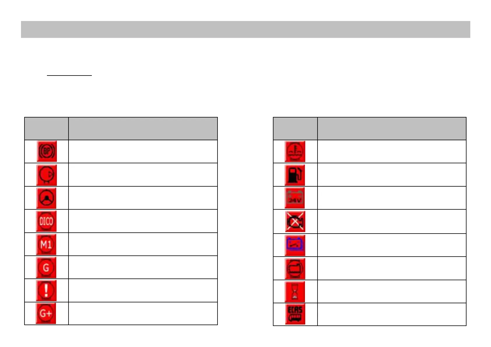 If any of the following symbols (as shown in Table 1) appear, you should proceed with caution and stop at a safe location, turning off the