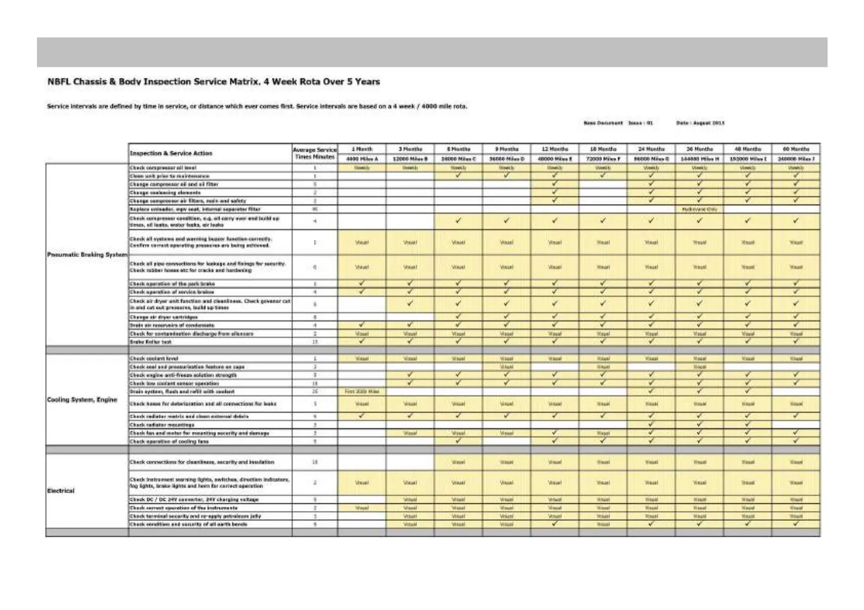 Maintenance - Service Schedule - See Service Manual For Latest Version