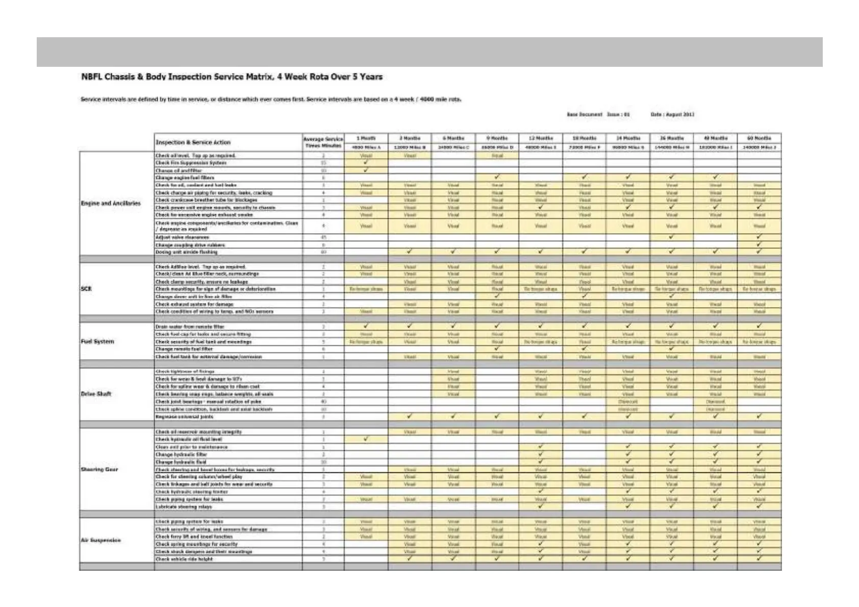 Maintenance - Service Schedule - See Service Manual For Latest Version