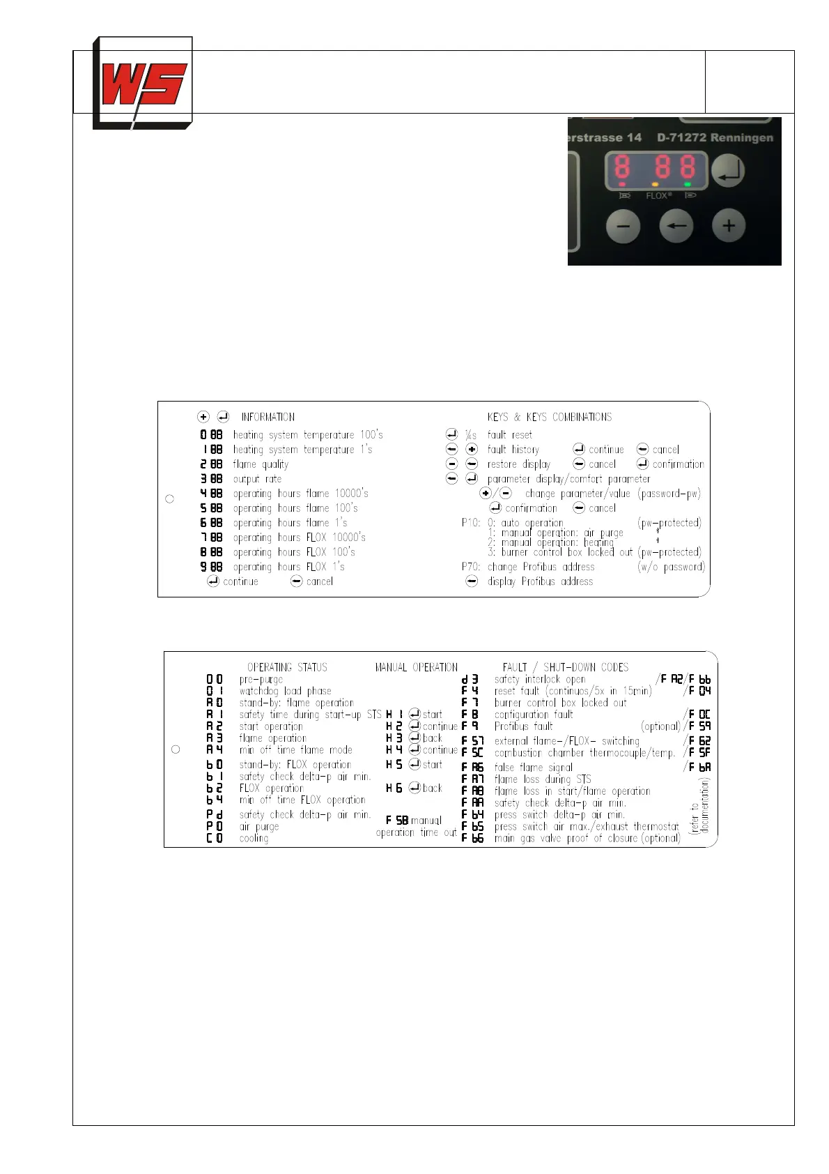 The functions of the buttons, button combinations, information, operating and fault codes are described on two