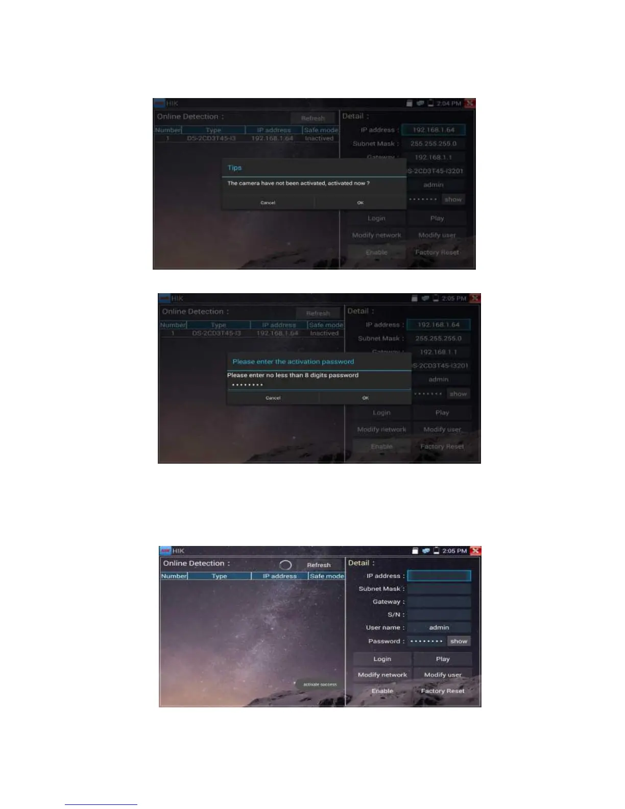 After activating the camera, the program default modifies the camera IP. Activated multiple cameras in