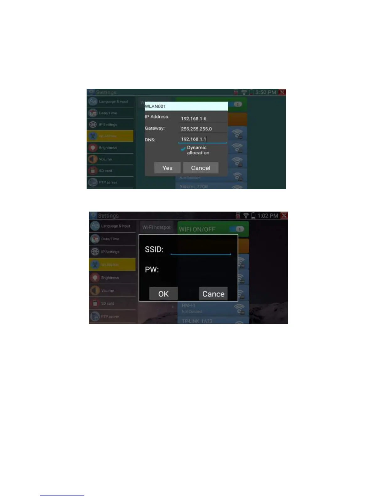 Wi-Fi hotspot: input “SSID” name and “password”, and then click “ok”to create Wi-Fi hotspot.