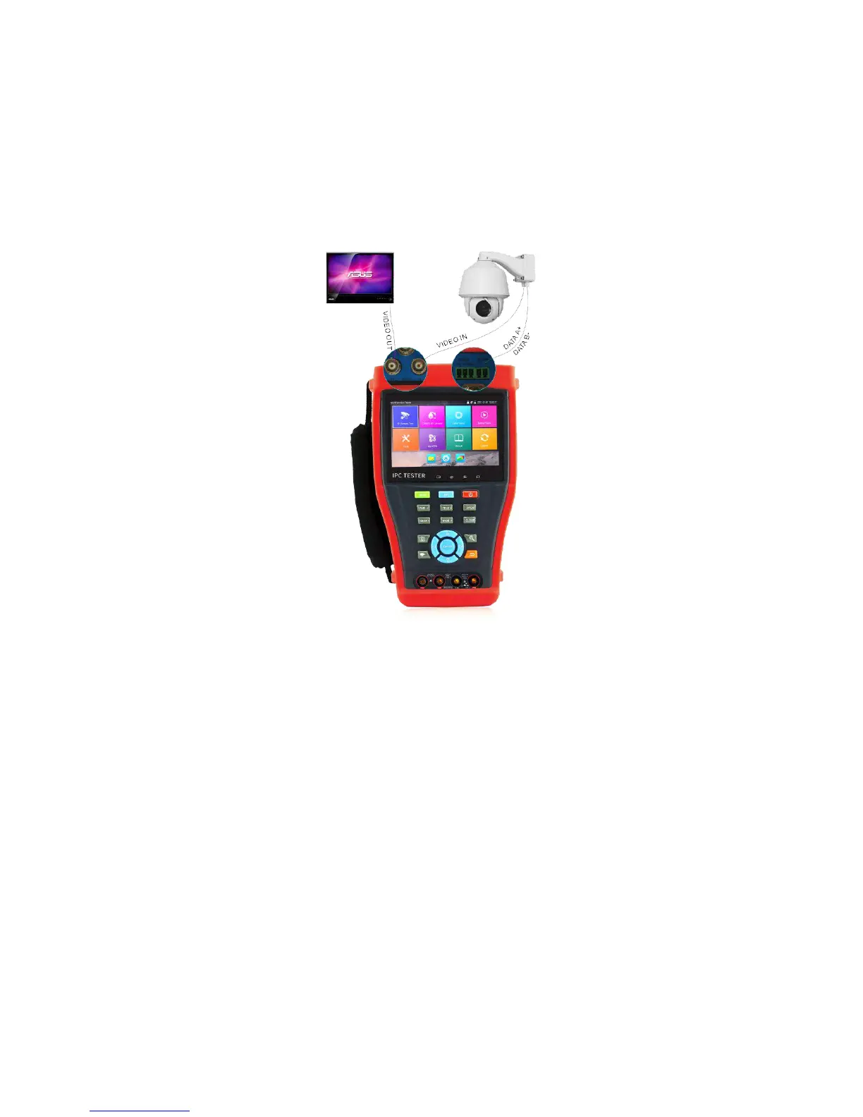 (1) Connect the camera's video output to the IP tester’s VIDEO IN. The image will display on the tester