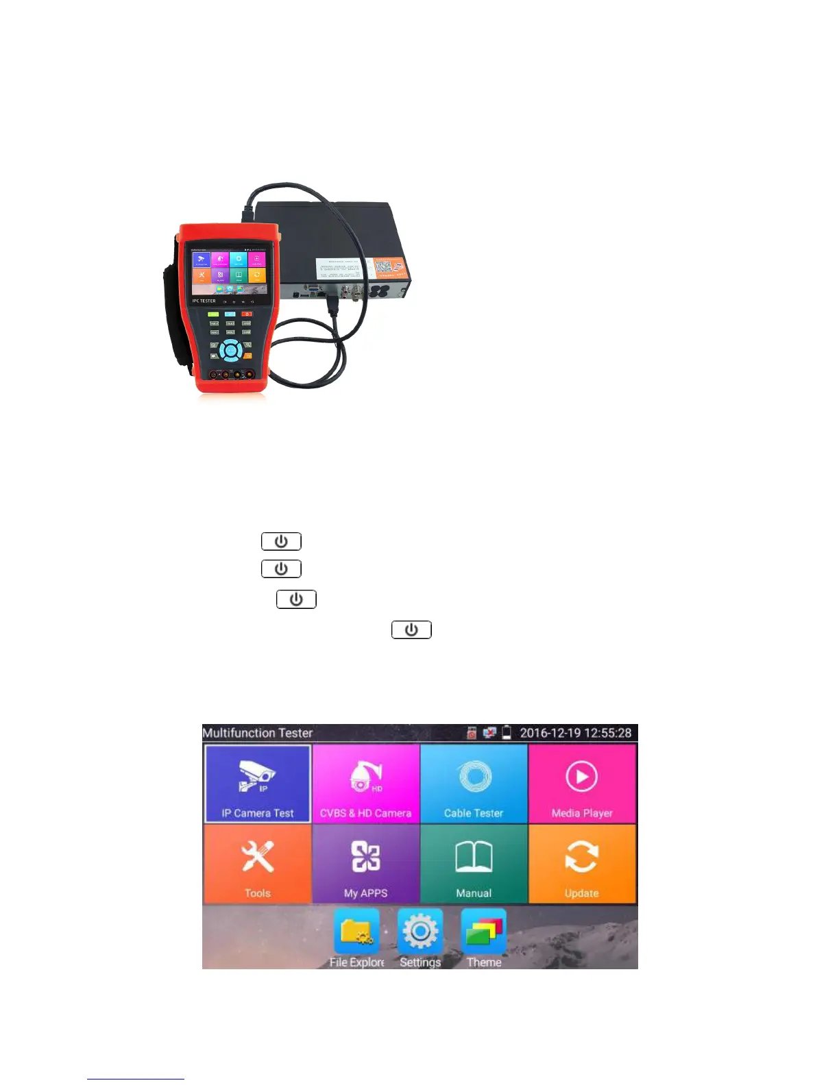DVR or other device’s HDMI in port connect to tester’s HDMI in port, the meter will display input