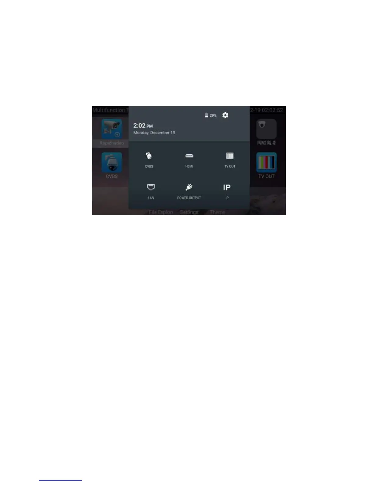 TV OUT: Click Video OUT to enter floating window, connecting the BNC cable to tester and