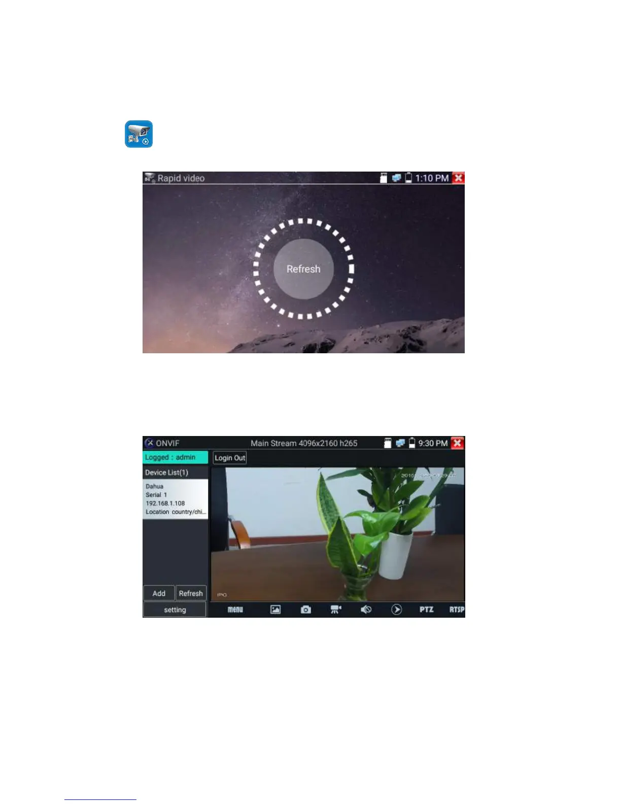 Auto log in and display camera image. Detailed operation refer to ONVIF function