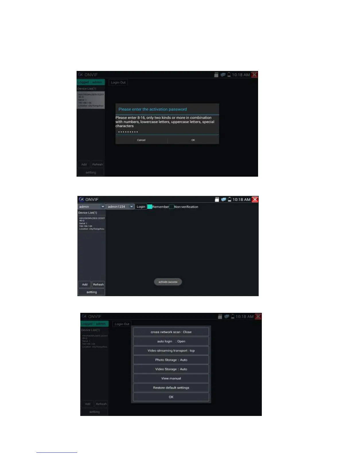Pop-up settings menu when click the “ONVIF setting ”icon in the upper left corner