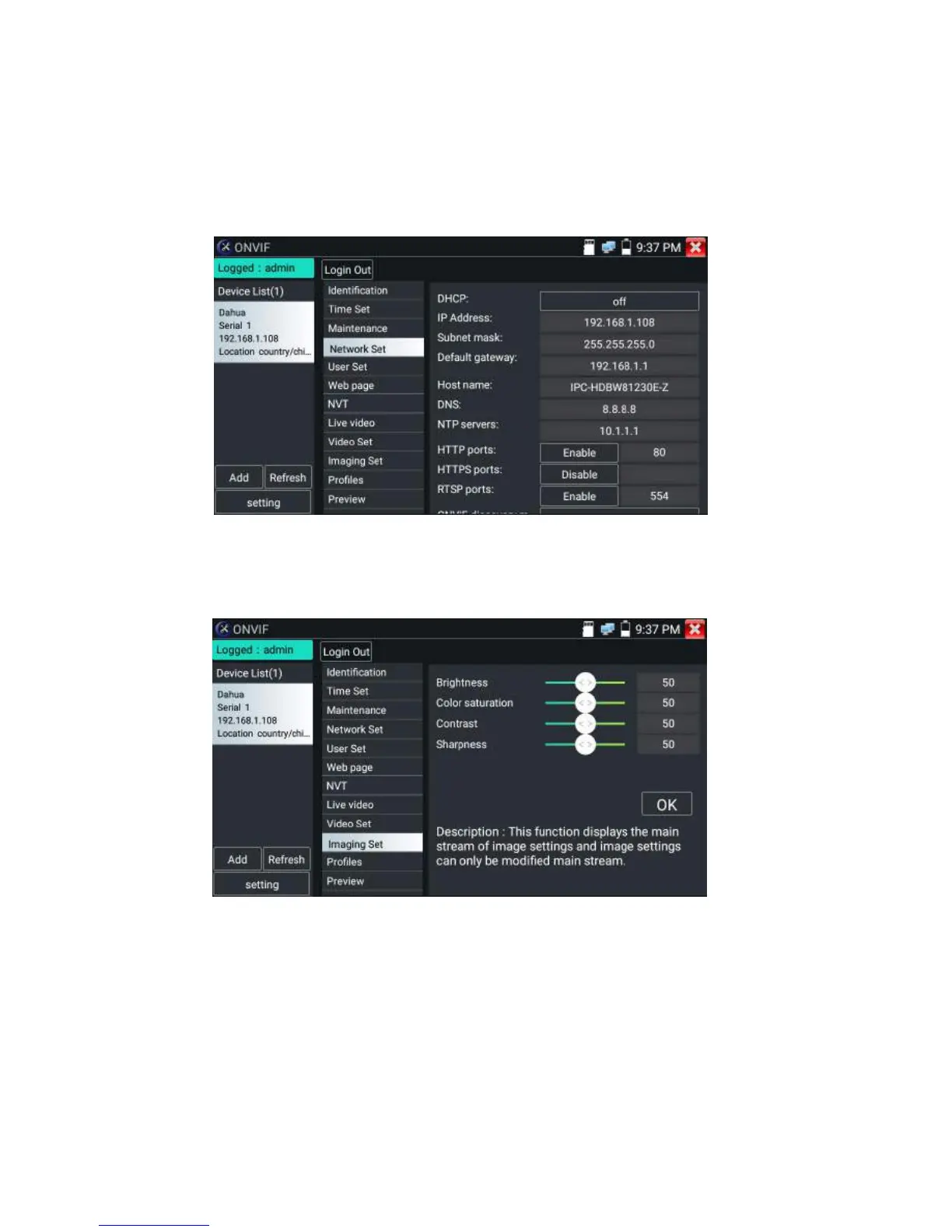 Image setting: Click Imaging Set” to adjust image brightness, saturation, contrast, sharpness and