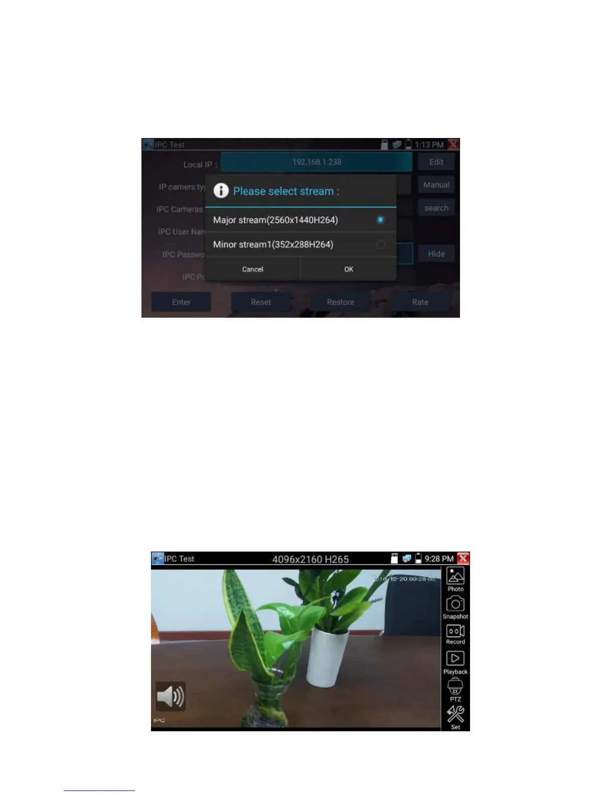 camera’s IP address. It is better to directly connect the IP camera to the tester so the search results will