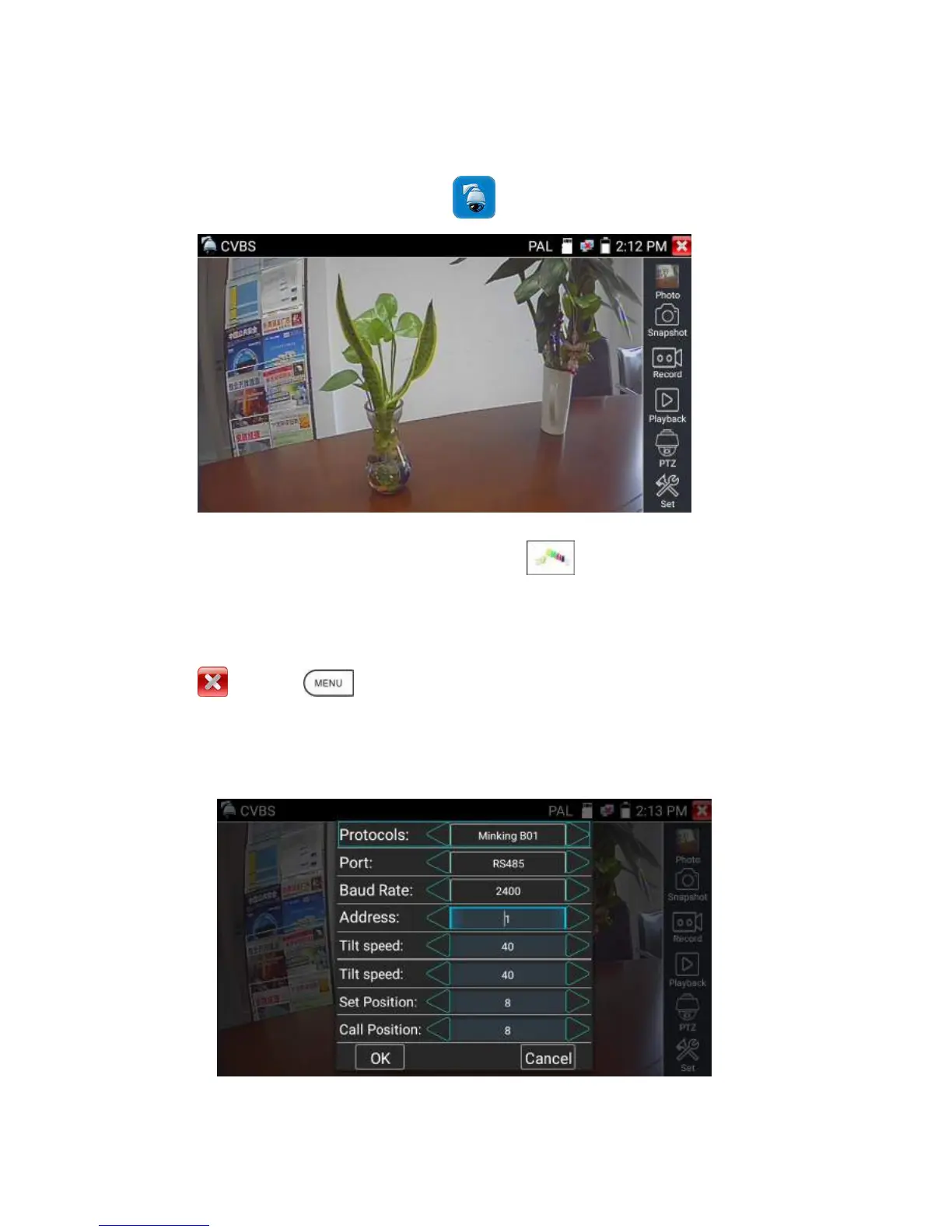 “Record” , “Playback” , “PTZ” , “Set” ,