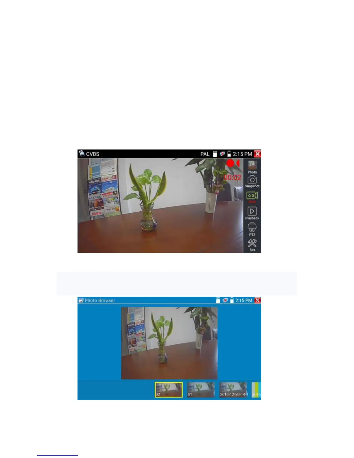 Click the icon “photo” to enter, click the selected thumbnail photo to display it on the screen.