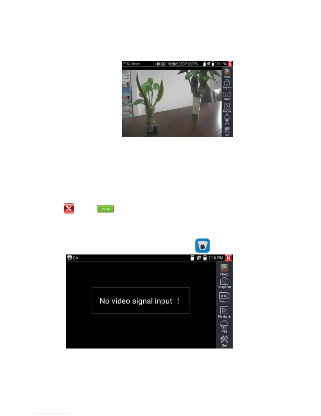 Select relative function on the right side Toolbar to operate, “Snapshot“ , “Record”, “Photos ”,