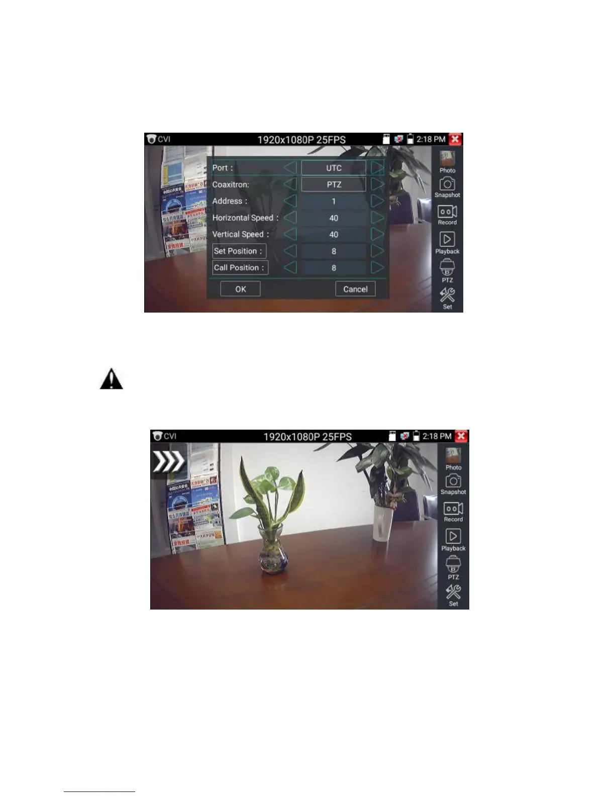 Operation instructions, please refer to “3.3.1 PTZ (1) Video monitor test”