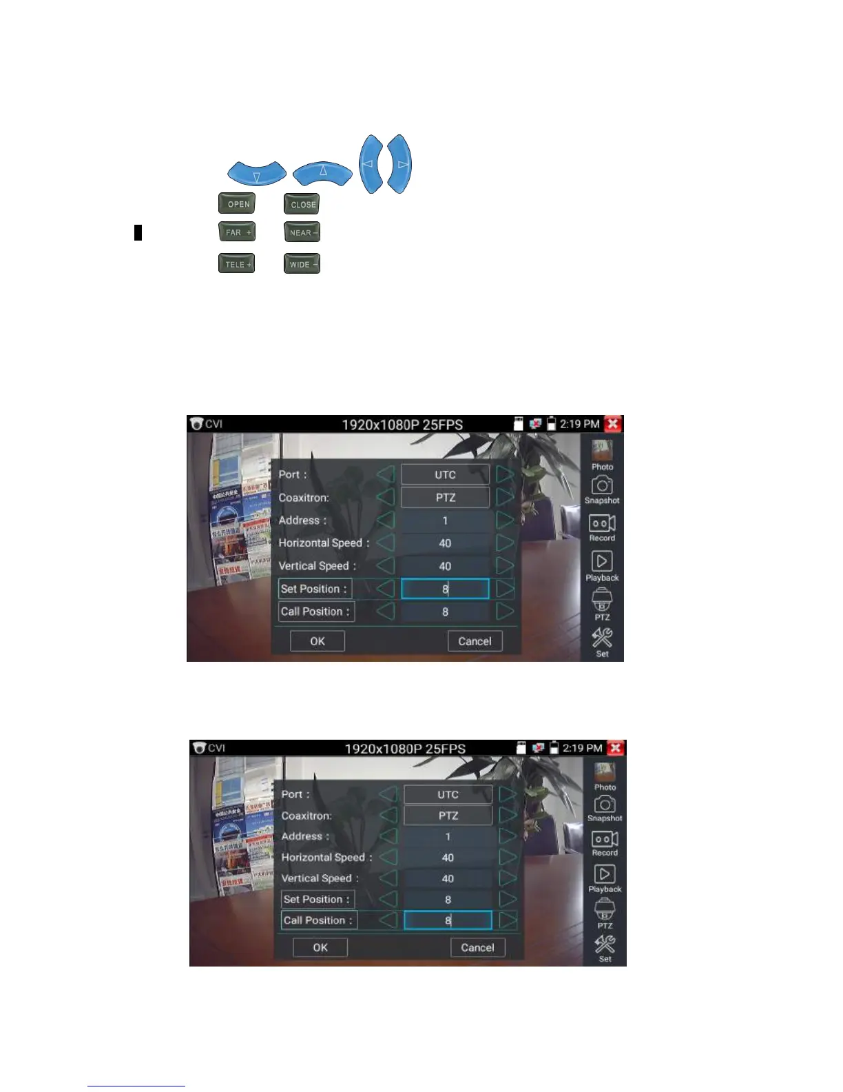 Tap the preset position area, input preset position number. Tap “call position” to complete call preset