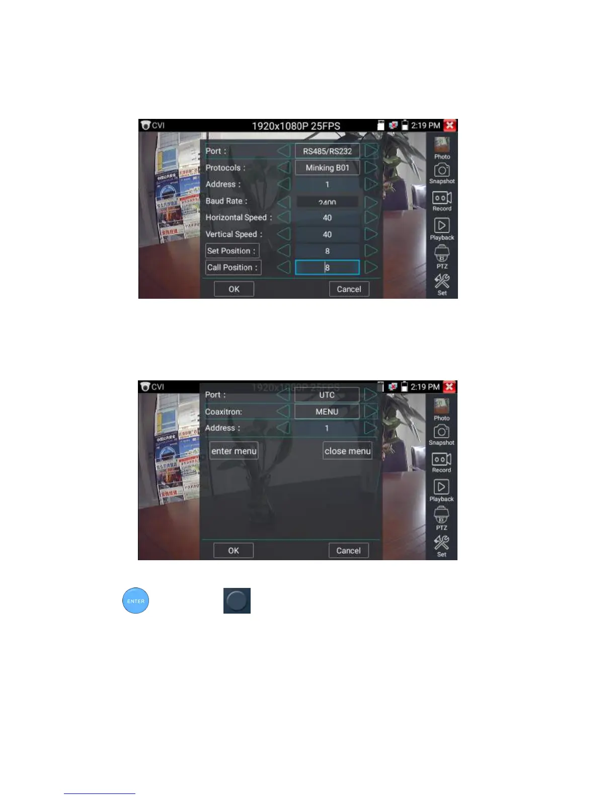 Tap icon “UTC””, select “menu setting” to enter the dome camera menu