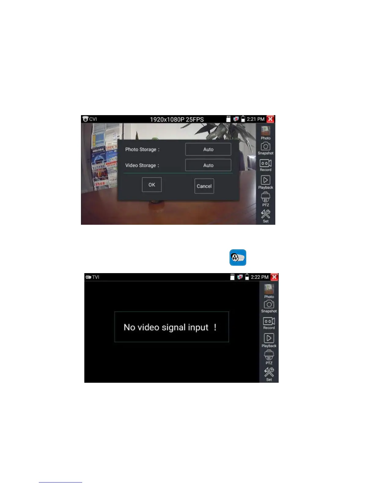 When HD TVI signal input, the tester will display the image resolution on the top bar. Double-taps on