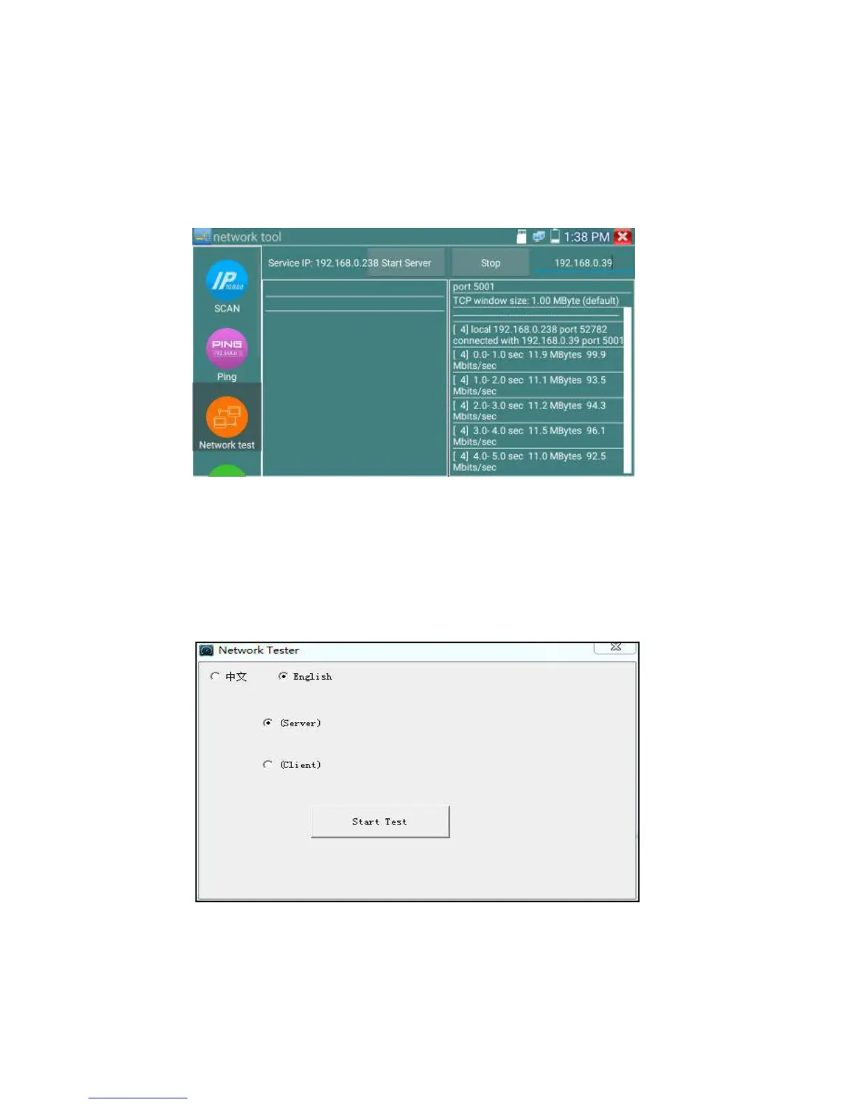 Tester as Client, tester’s IP address is:192.168.0.238. The Server and the Client are at the same network