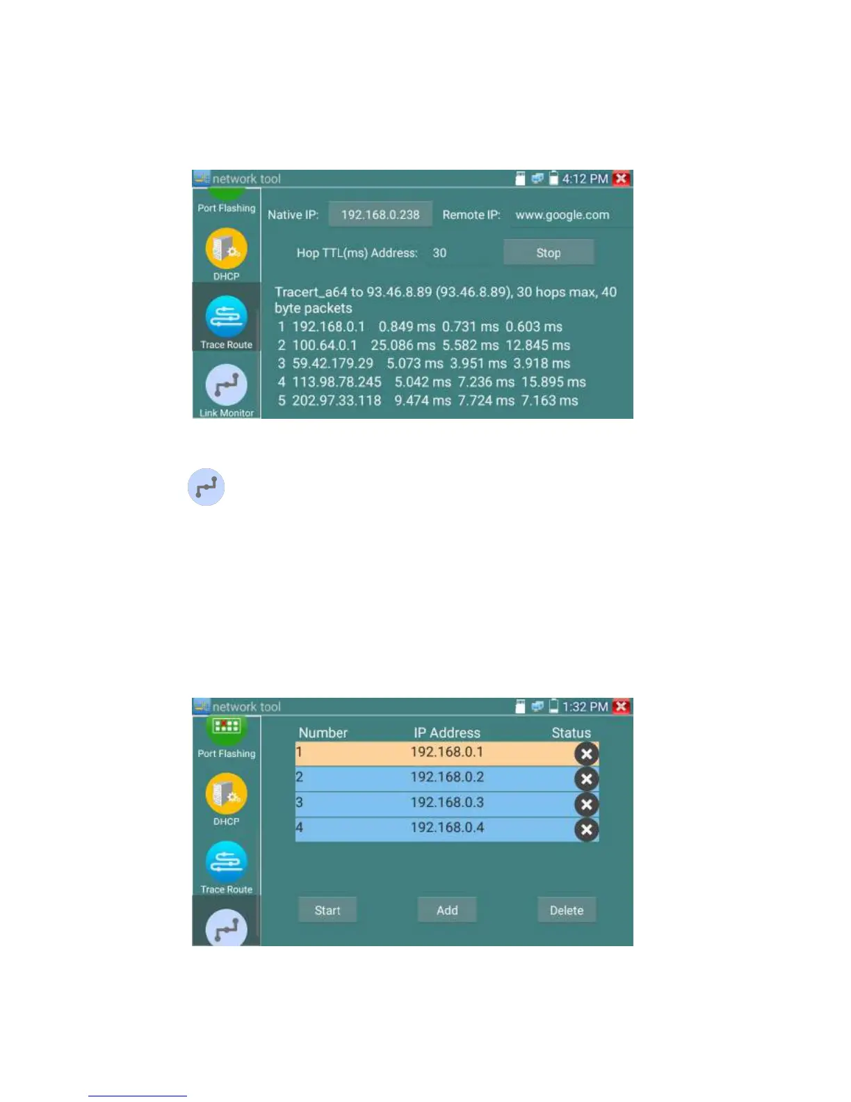 addresses are added to the Link Monitor list, click “Start”. If the IP address status shows a check mark