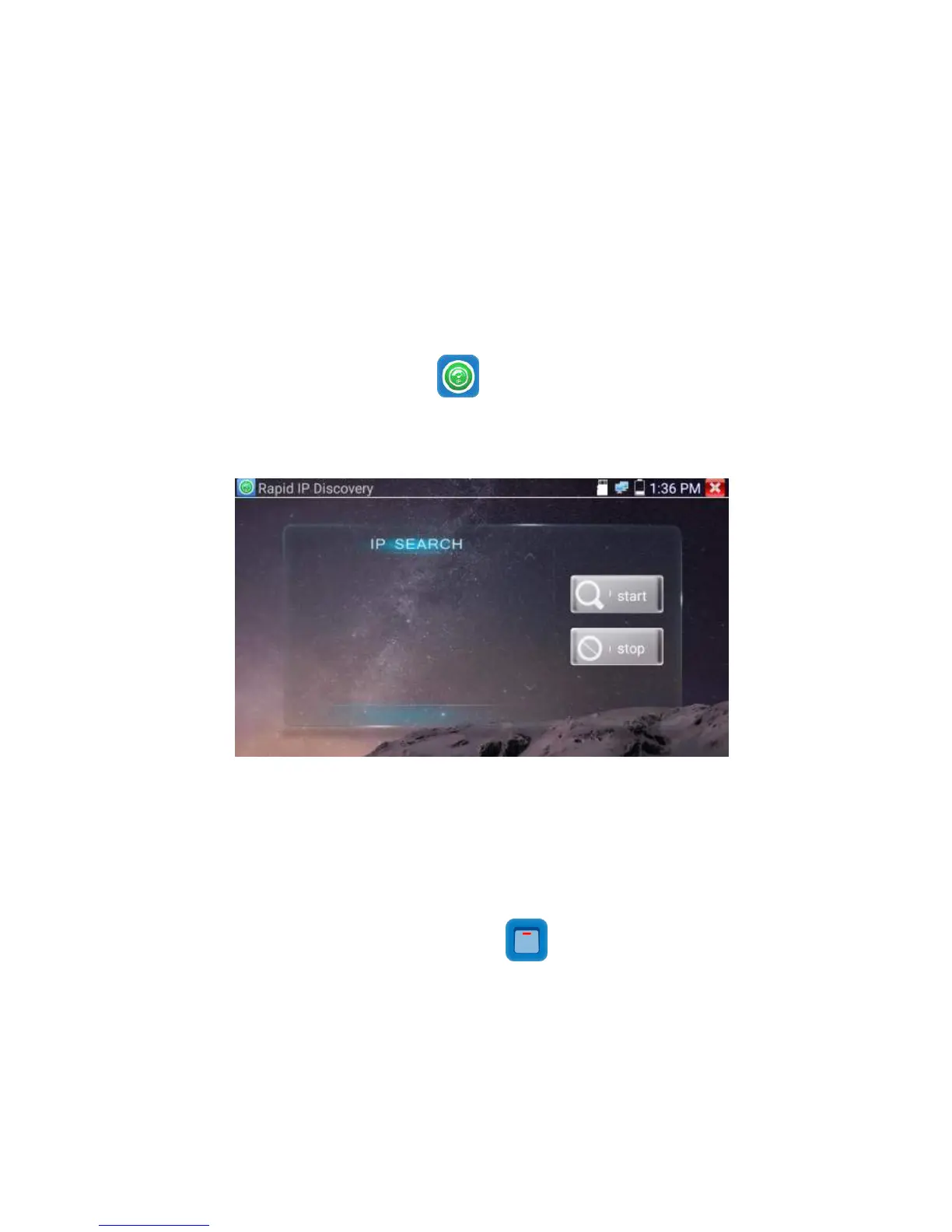 Connect the cable to tester’s LAN port. Press to enter Rapid IP Discovery app.