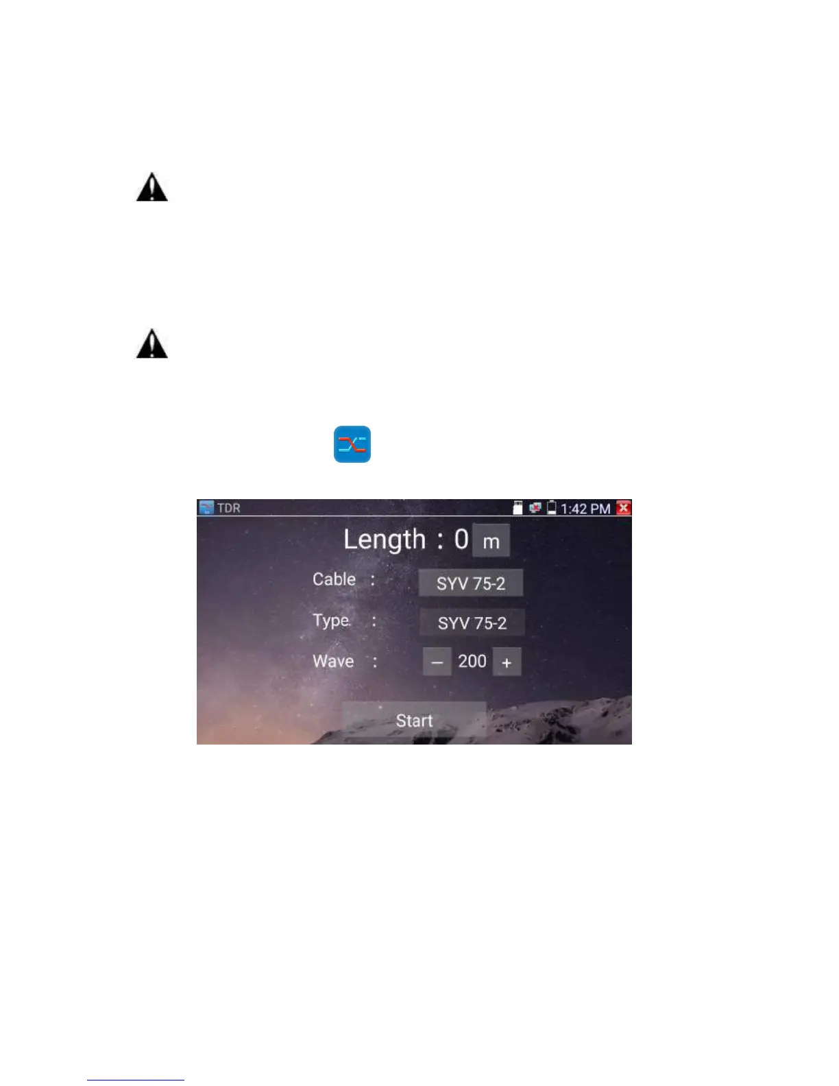 in cable type for testing, click “+” and“-” to adjust cable’s wave speed .