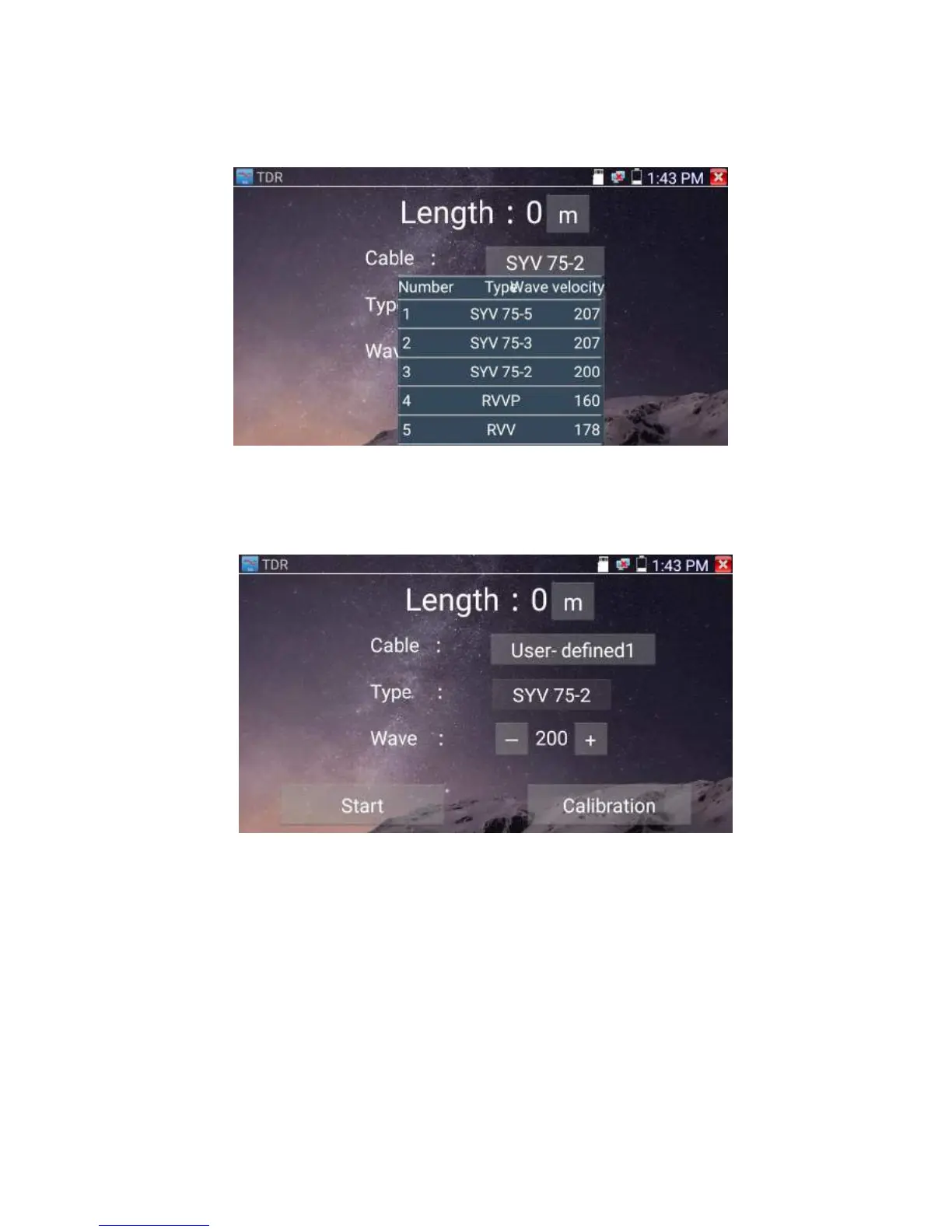 User-defined calibration: Choose the cable 100 meters to 200 meters (more than 50 meters) , click