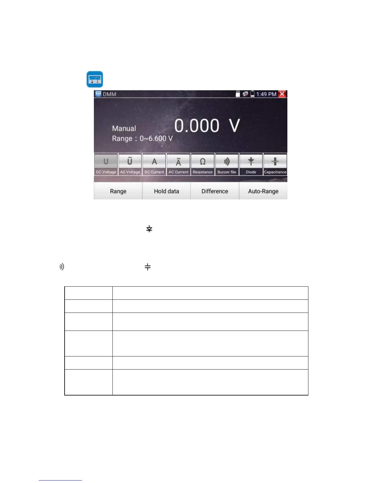 Ω:Resistance Measuring :Diode Testing