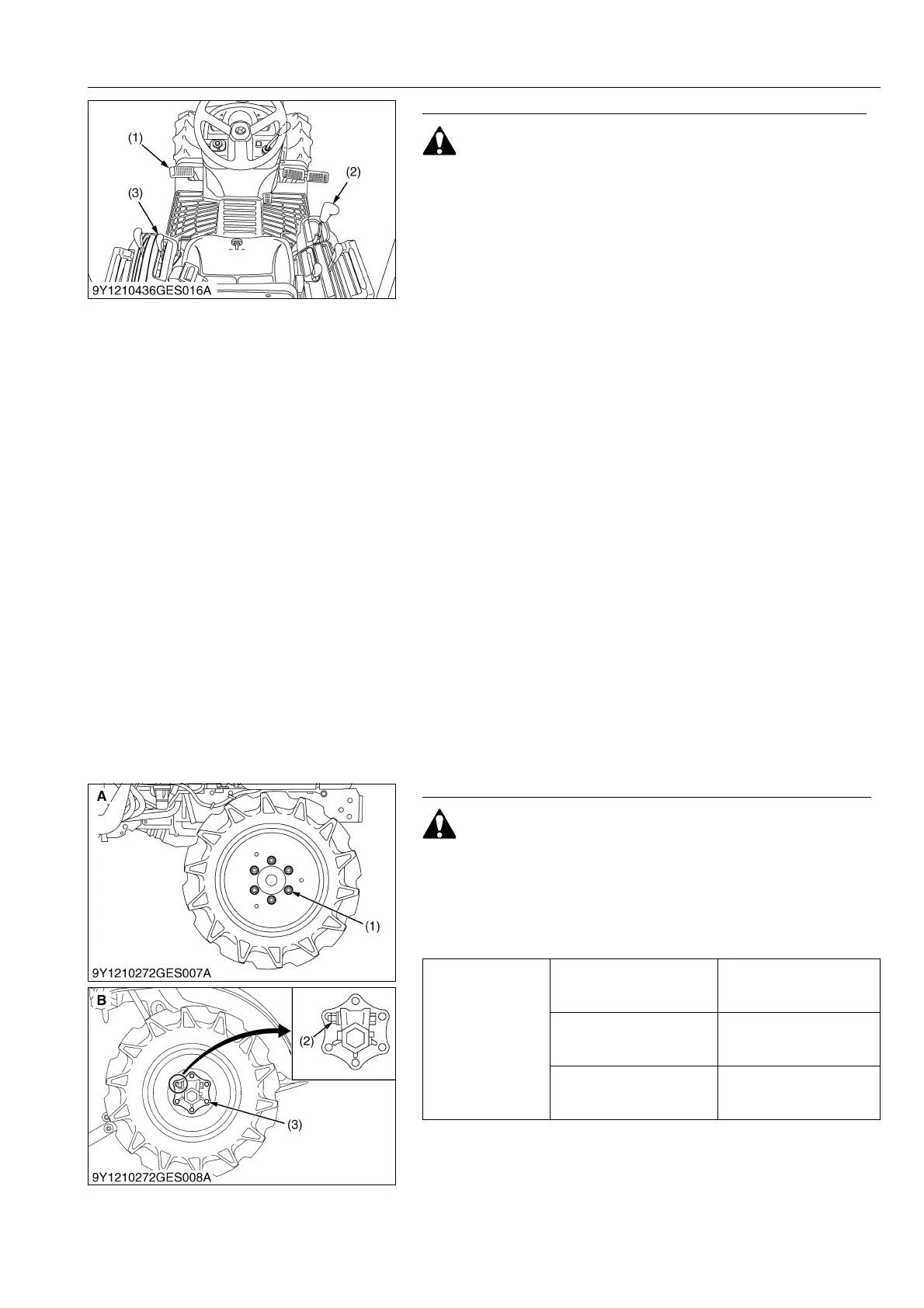 • Never operate tractor with a loose rim, wheel, or axle.