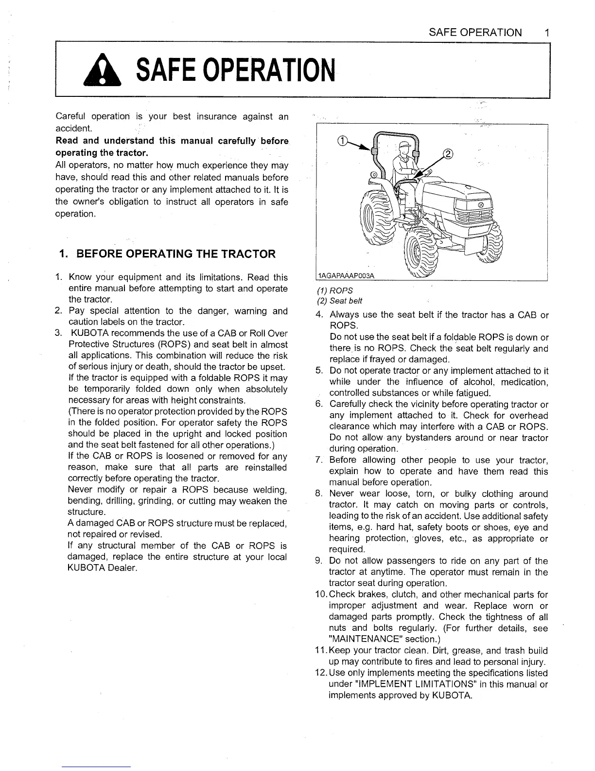 wsm L2800 - Before Operating the Tractor
