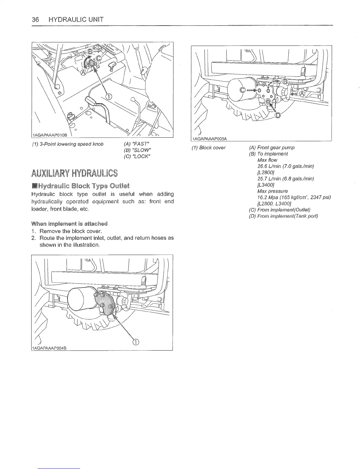 wsm L2800 - Auxiliary Hydraulics; Hydraulic Block Type Outlet