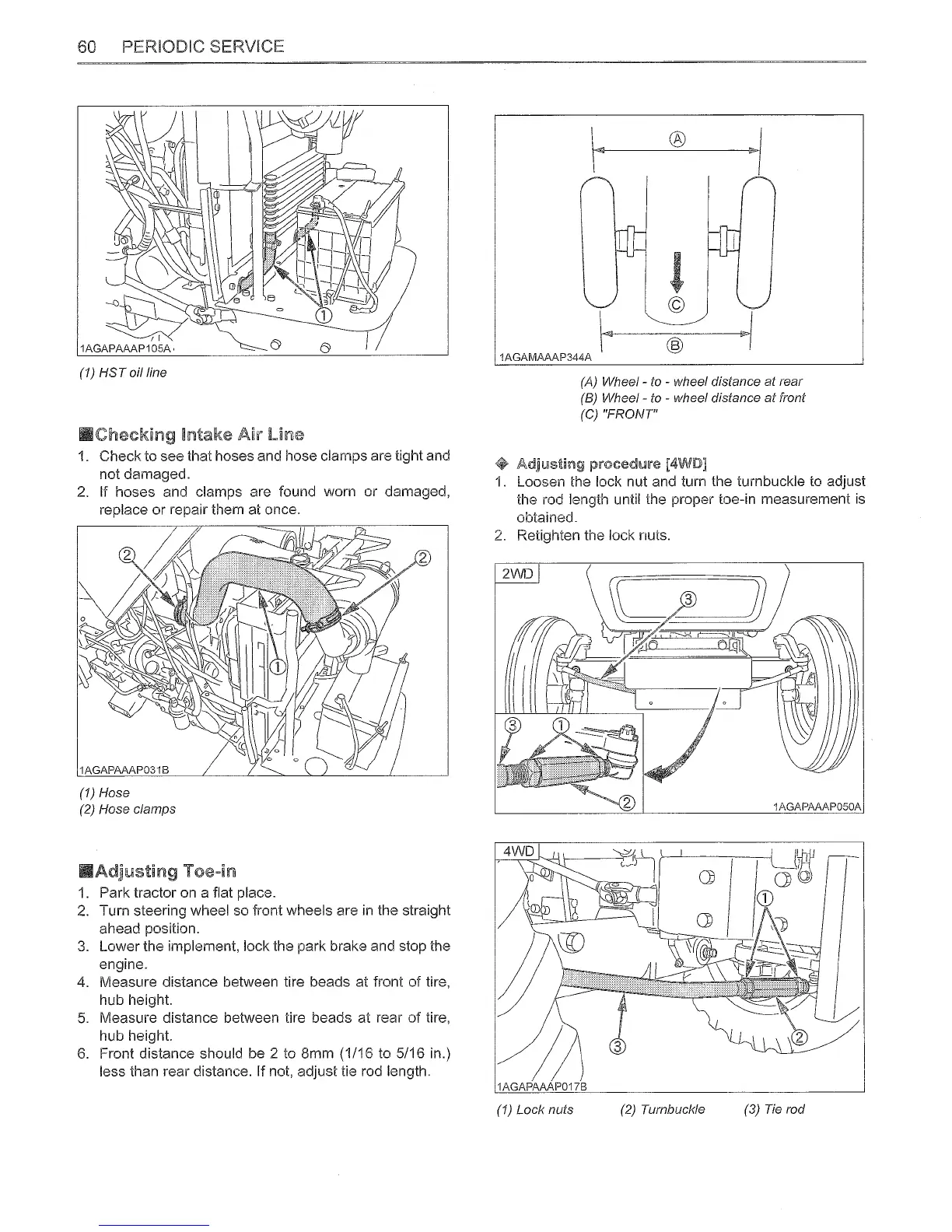 wsm L2800 - Checking Intake Air Line; Adjusting Toe-In; Adjusting Procedure [4 WD]