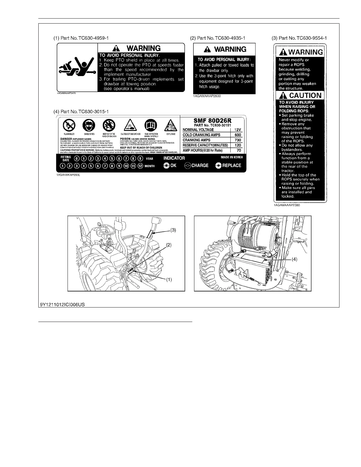 5. Mount new danger, warning and caution labels by applying on a clean dry surface and pressing any bubbles to