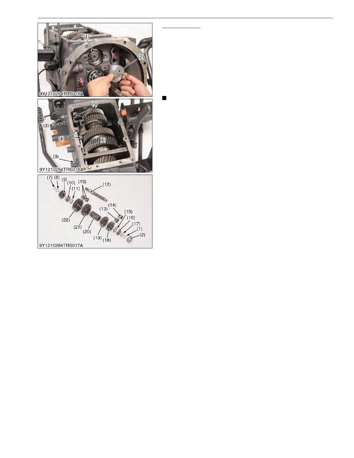 5. Draw out the fork rod (6) to the front and remove the shift fork