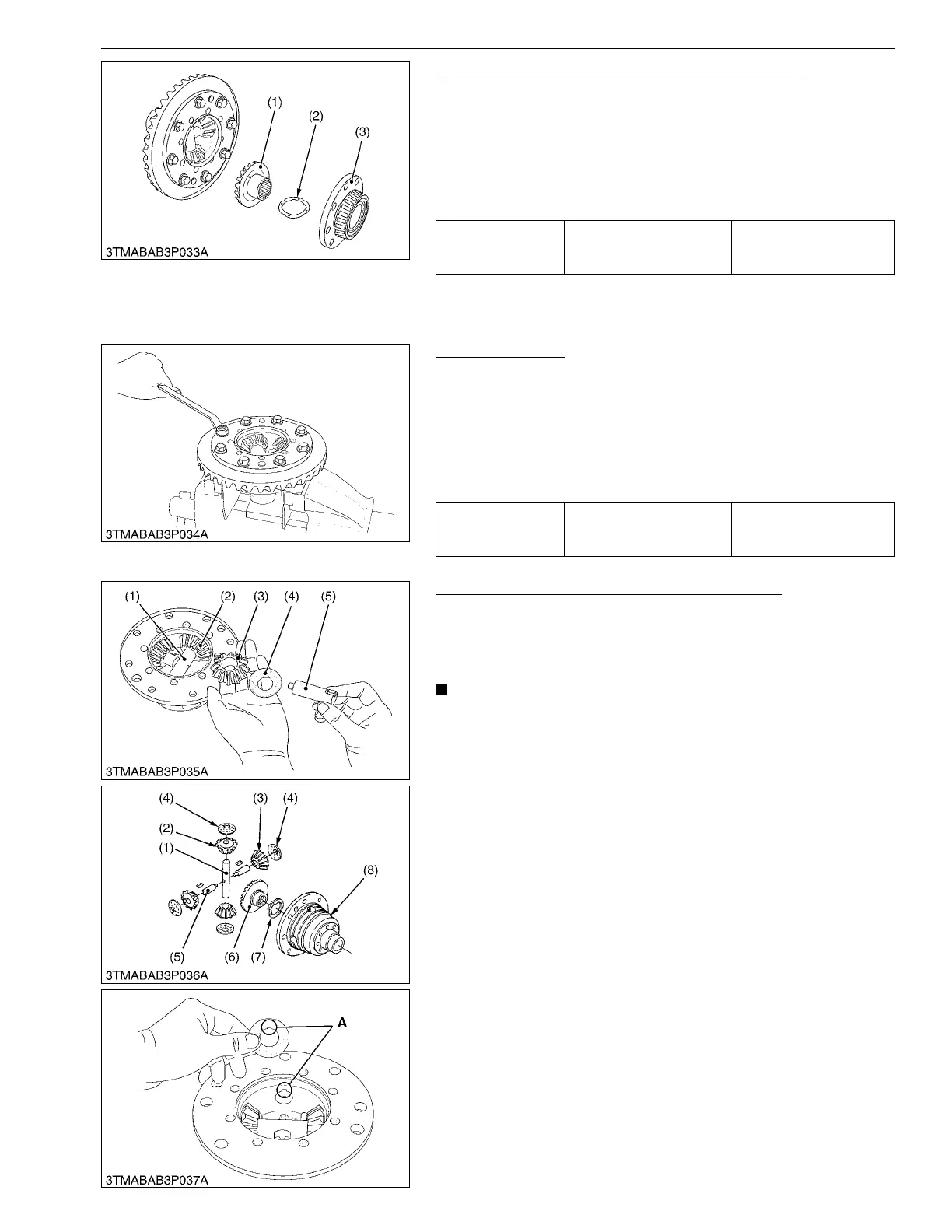 • Check the differential pinions (2) and (3), and pinion shaft (1)
