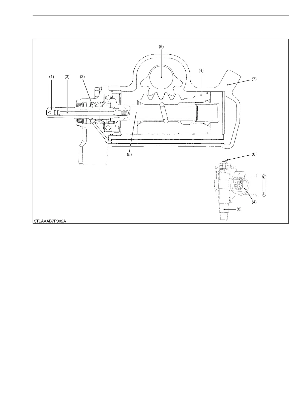 (6) that turns by the adjust screw (8) changes the clearance between the rack and pinion, adjusting the play of the